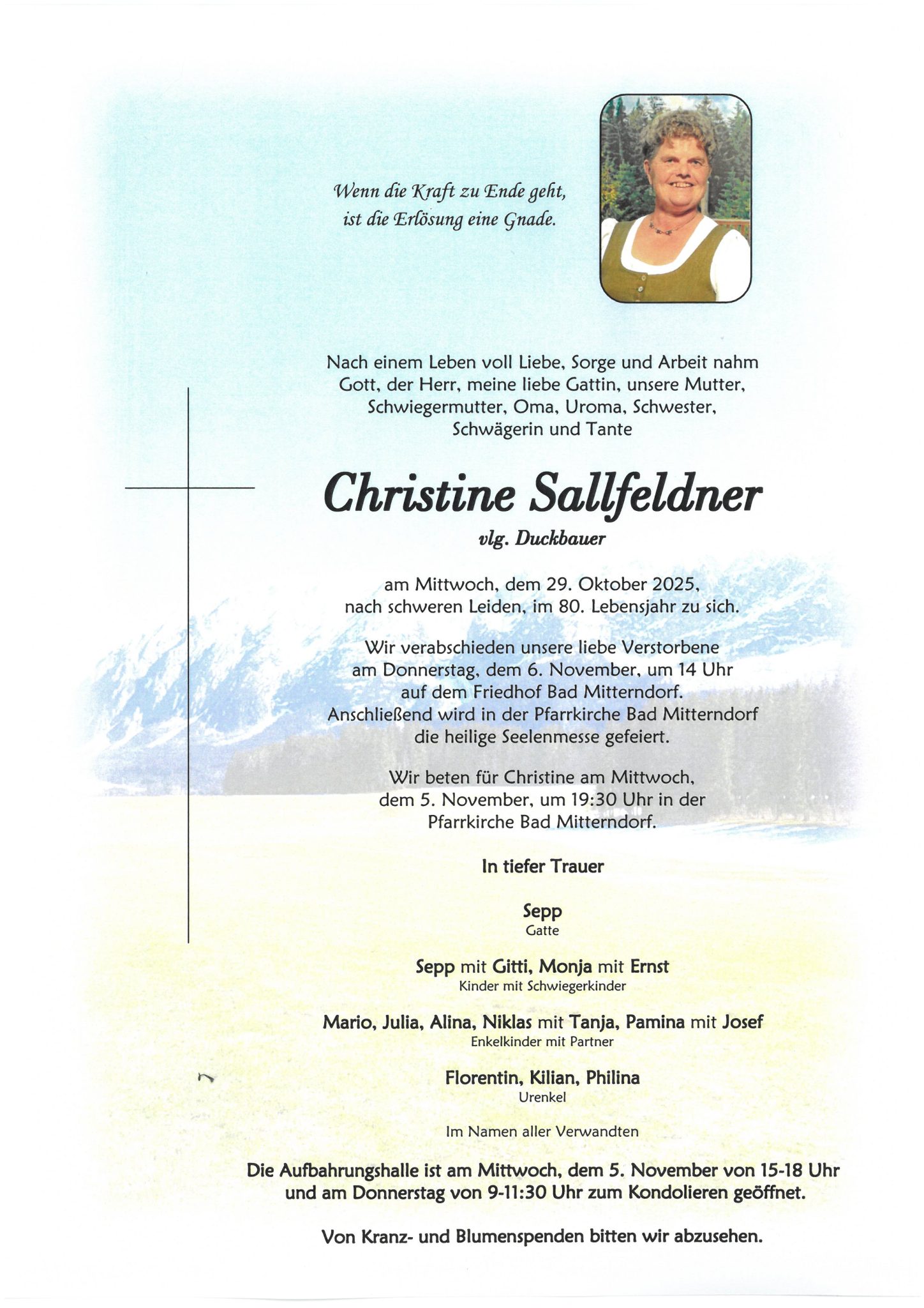 Verabschiedung: Donnerstag, 6.11 am Friedhof Bad Mitterndorf, anschließend wird die hl. Seelenmesse gefeiert.